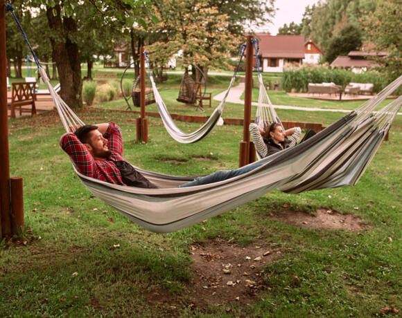 W naszym Resorcie każdy Gość znajdzie miejsce dla siebie - posiadamy strefę na ognisko i grilla, strefę chillout, strefę hamaków, plac zabaw, boisko multifunkcyjne, bilard, tenis stołowy, rowery.